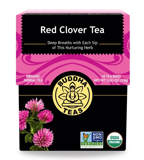 Buddha Red clover tea is a delicious herbal tea that would make a great addition for any tea shelf.